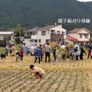 9月最後の週末、曇り空で過ごしやすい気候のなか、農業委員会主催の親子稲刈り体験が開催されました。